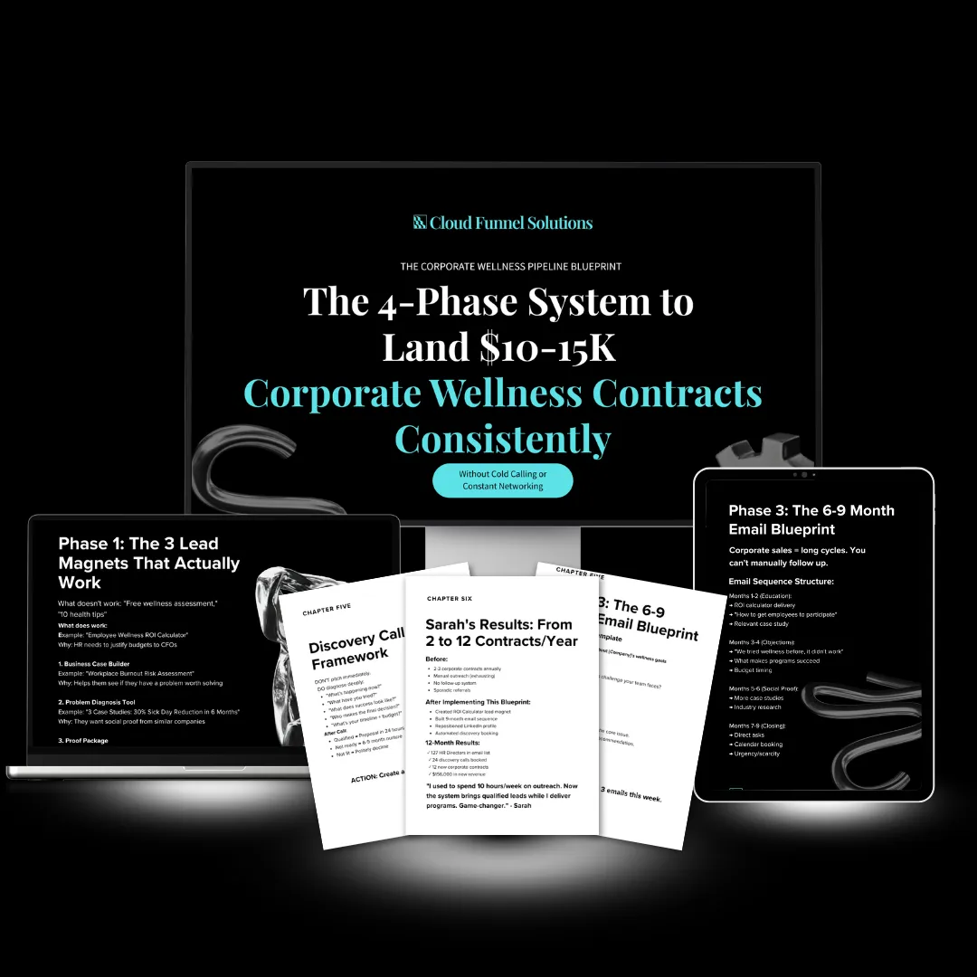 I'm Samantha, founder of Cloud Funnel Solutions. I've talked to dozens of corporate wellness consultants who are brilliant at what they do—amazing workshops, proven programs, real ROI for companies. But they're exhausted from constantly chasing the next contract. Manual LinkedIn outreach.